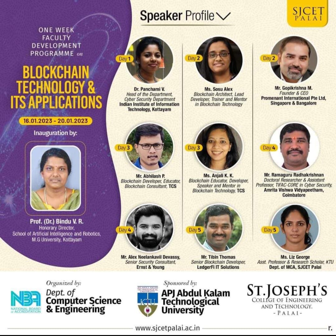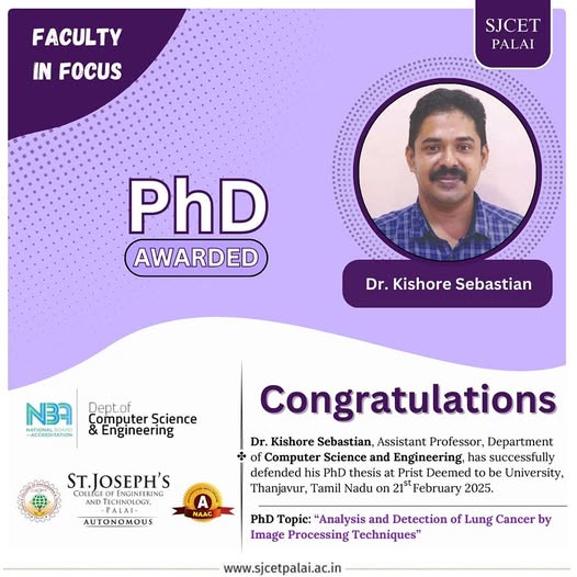 Striking the delicate balance between theory and practice, the Computer Science and Engineering Department of St. Joseph’s College of Engineering and Technology Palai provides a well-rounded education through innovative methods to meet the needs of our students. Computer Science and Engineering Department has a unique blend of faculty and facilities that offers students a rare opportunity to do research and learn Computer Science in new collaborative ways.