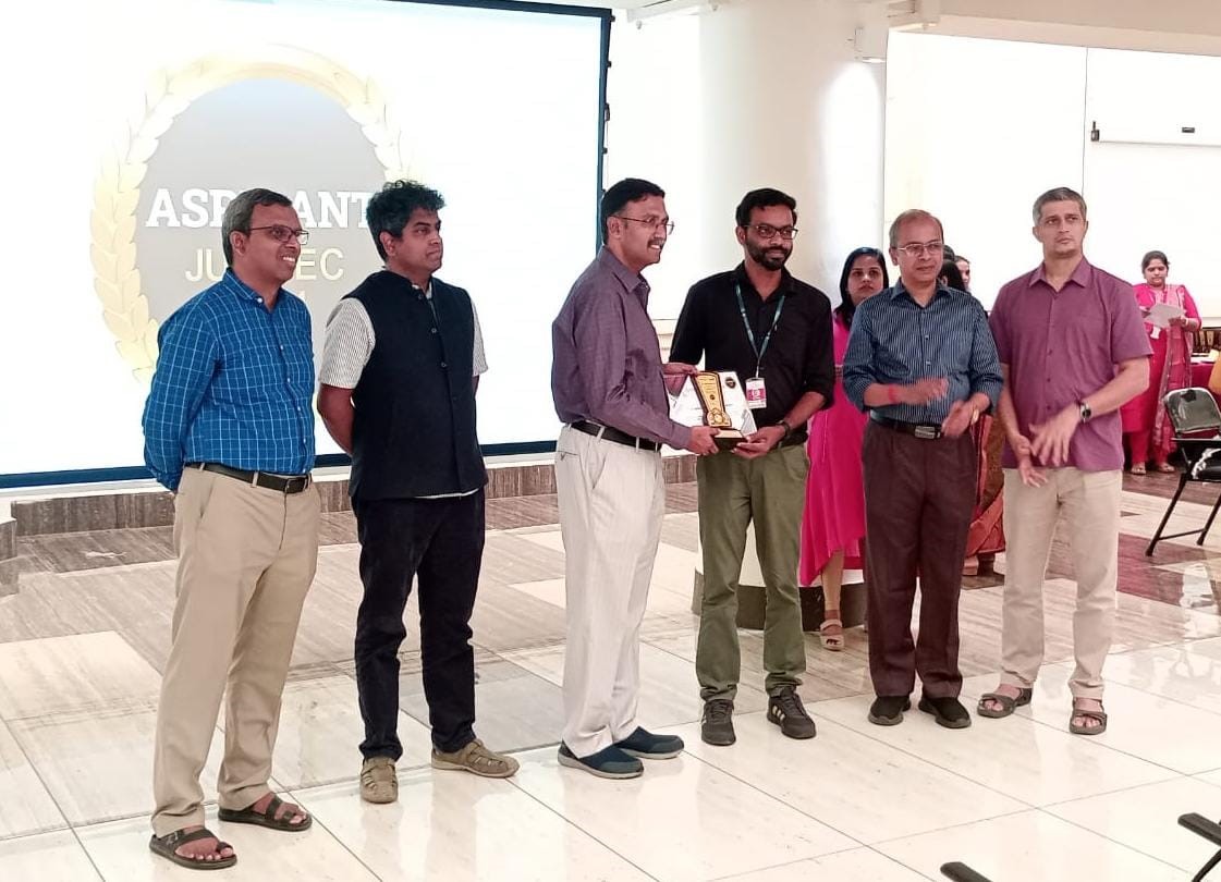 SJCET, Palai, was selected and recognized for the “NPTEL Aspirant Award” by IIT Madras, for having the maximum number of candidates certified in NPTEL examinations. On behalf of our institution, Prof. Jibin Philip, NPTEL SPOC, received the award from Dr. Andrew Thangaraj, NPTEL Coordinator, IIT Madras. The event was organized by IIT Madras.(June-2024)