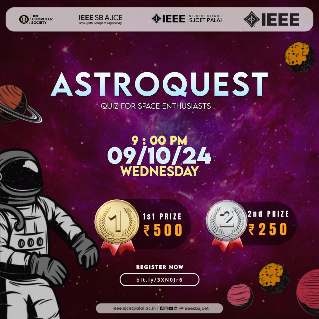 The Astroquest quiz attracted over 80 participants, offering a dynamic and competitive environment. Conducted on the Quiziz platform, the competition covered topics such as astronomy, space missions, and celestial phenomena. Alex S Vanissery secured the runner-up position, winning Rs. 250, while Nikitha Mathew took first place, earning Rs. 500. The event was a success, fostering interest in space exploration and contributing to the excitement of Space Week celebrations.