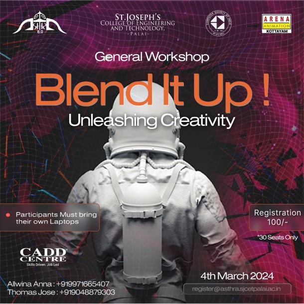 The CSI Student Chapter of St. Joseph’s College of Engineering & Technology, Palai, organized a full-day hands-on workshop on Blender and 3D Modelling on March 4, 2024. The workshop aimed to provide students with practical skills in using Blender, a popular open-source 3D modelling software.