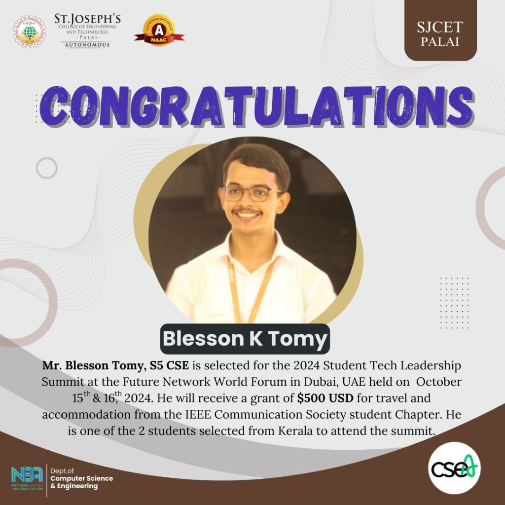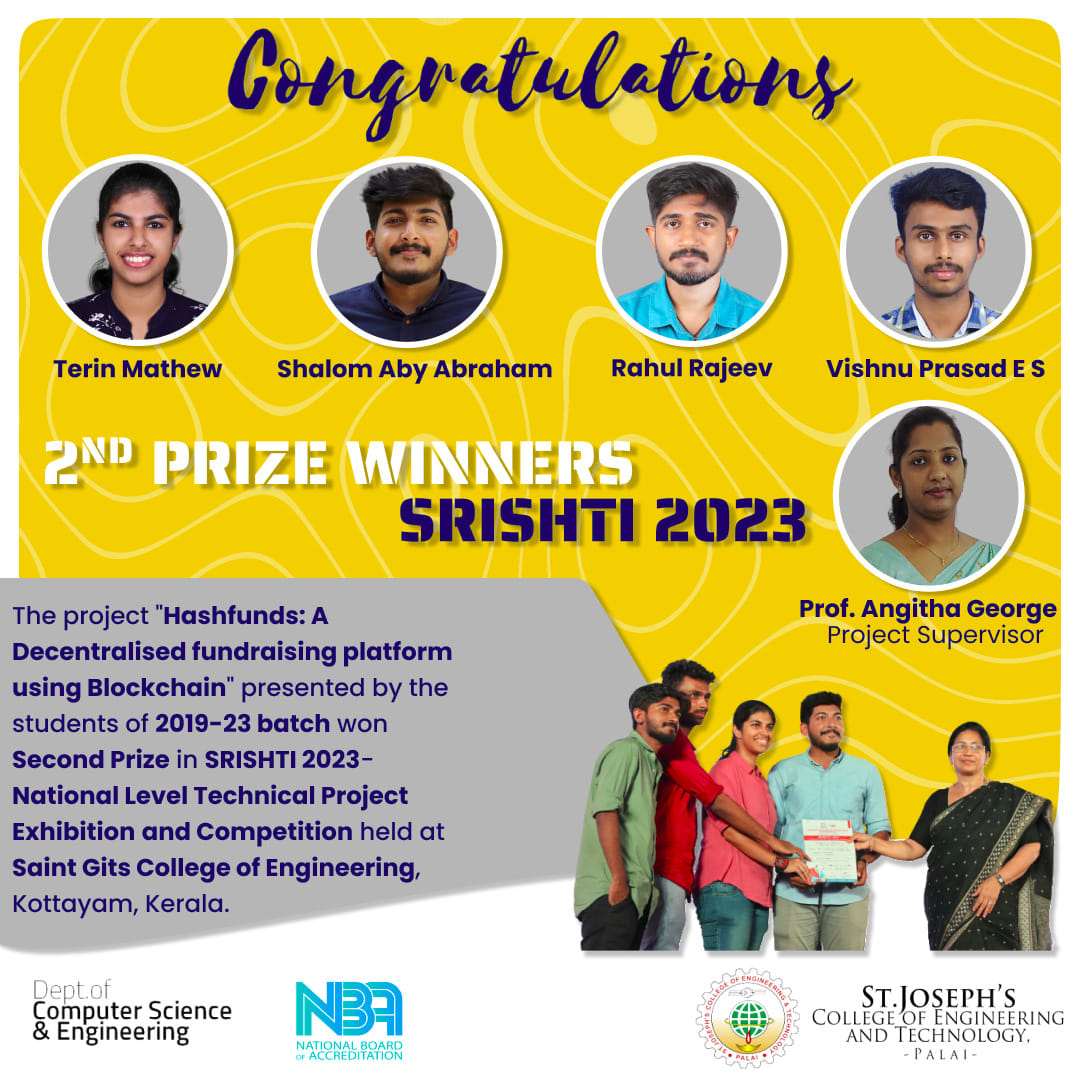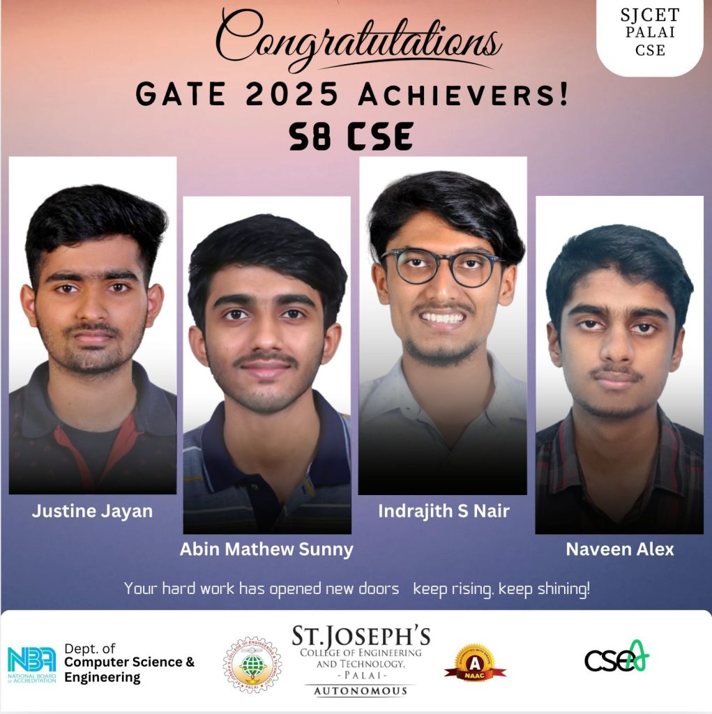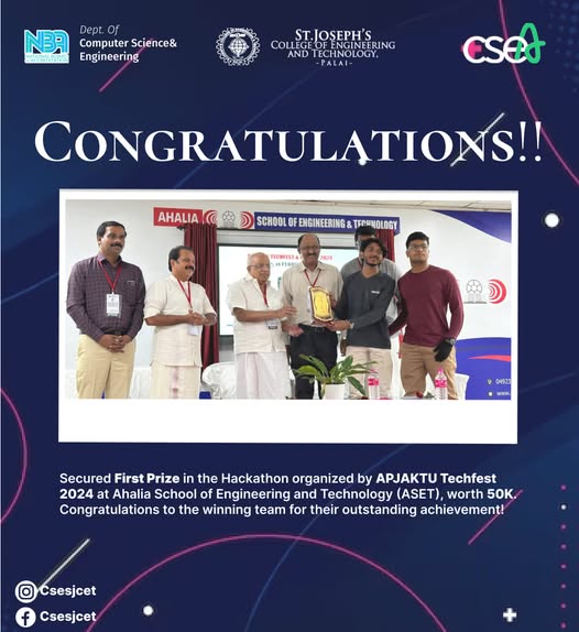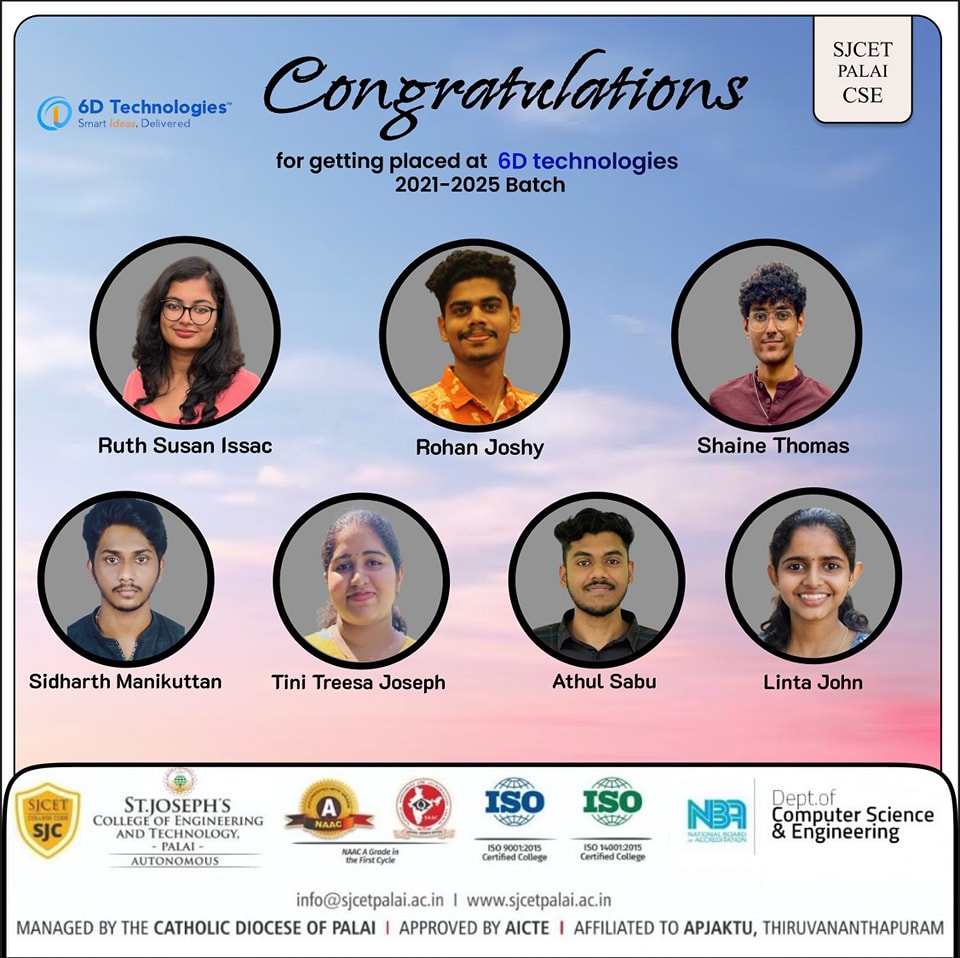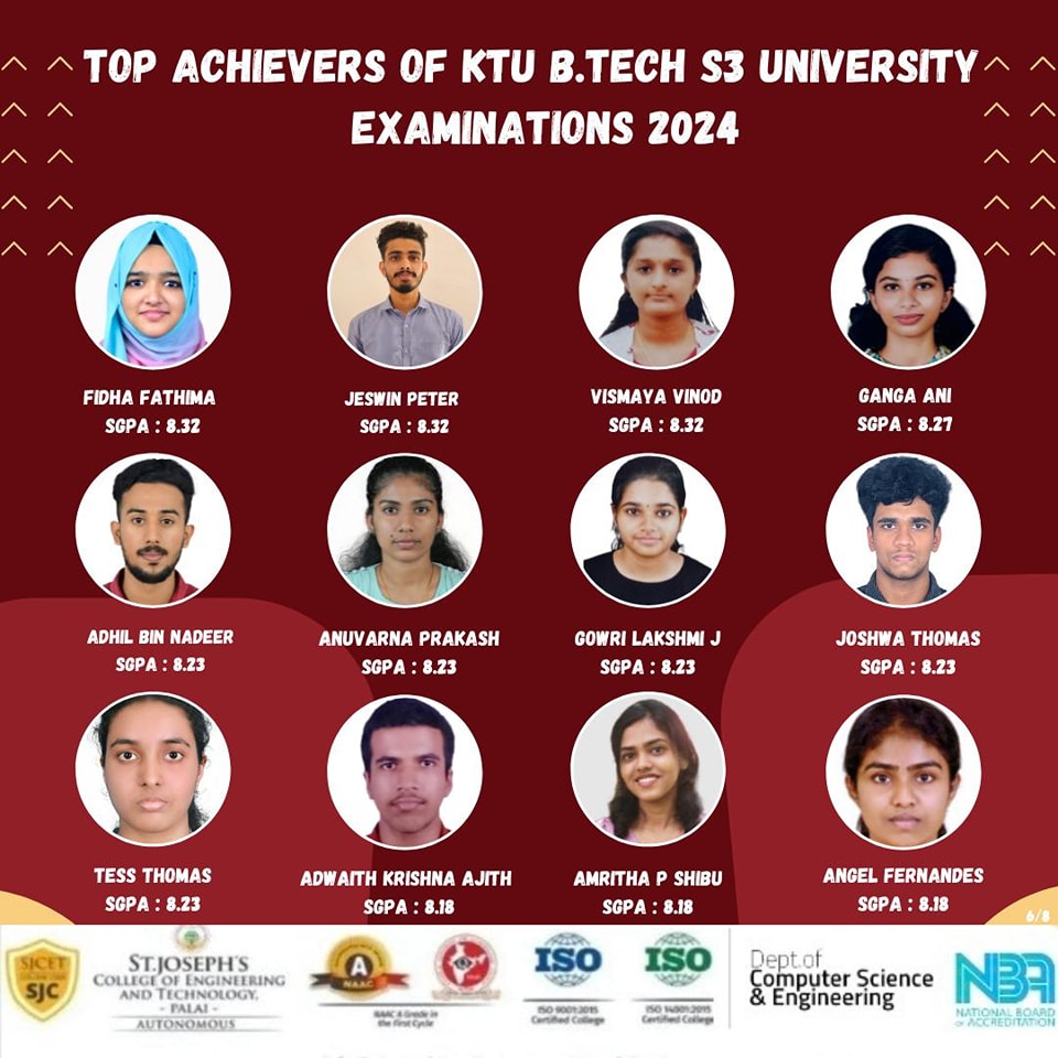 Striking the delicate balance between theory and practice, the Computer Science and Engineering Department of St. Joseph’s College of Engineering and Technology Palai provides a well-rounded education through innovative methods to meet the needs of our students. Computer Science and Engineering Department has a unique blend of faculty and facilities that offers students a rare opportunity to do research and learn Computer Science in new collaborative ways.