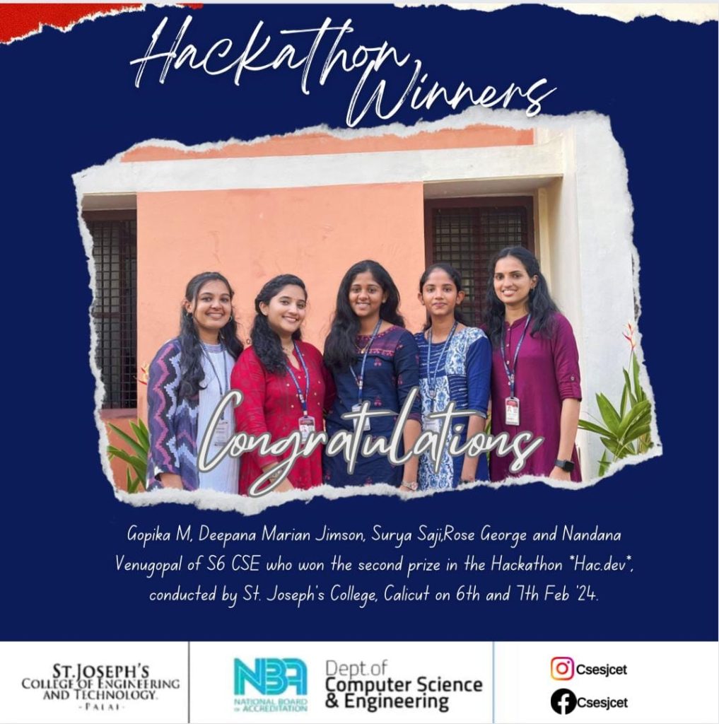 Praveen Rajan and Jismi Saju of S6 CSE secured First Prize and a prize money of ₹3,500 in the Food Hackathon competition, held as part of Nakshatra 25 at Saintgits College of Engineering.