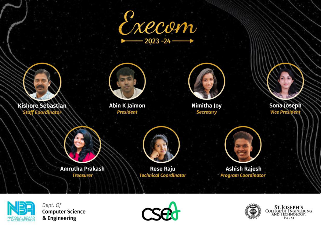 The Computer Science and Engineering Association (CSEA) stands as a beacon of innovation and excellence within our institution, mirroring the dynamic nature of the field itself. Reflecting upon the words of a renowned computer scientist, “Innovation distinguishes between a leader and a follower,” CSEA was established with a vision to foster creativity, critical thinking, and technological prowess among our budding computer science and engineering students. Our primary goal is to provide a platform where students can engage in collaborative learning, hands-on projects, and cutting-edge research under the mentorship of our experienced faculty members. Through a myriad of workshops, seminars, and coding competitions, CSEA endeavors to inspire the next generation of tech leaders who will shape the future of the digital world.