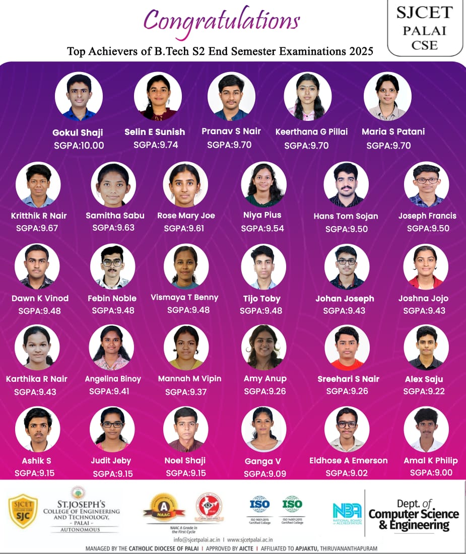 | 5 | Project Work and Seminar (PWS) | Dr. Praseetha V M | 1. Prof. Ashly Thomas |