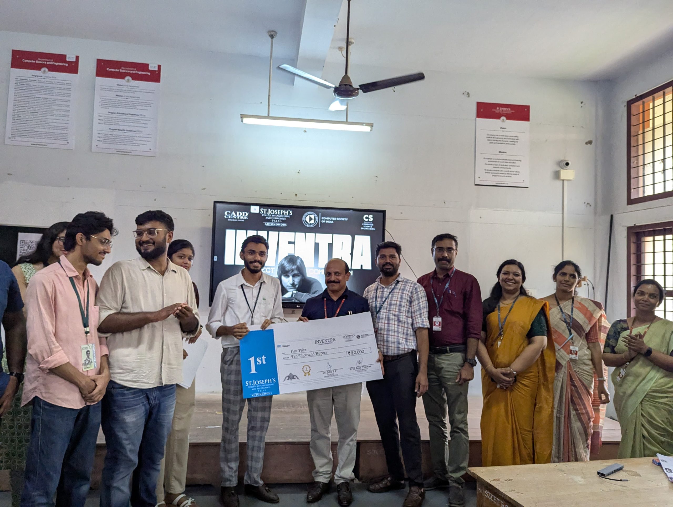 Congratulations to Avees Joseph, Jerin Thomas, Aiswarya Sambath and Anjaly Manuel (Final year Computer Science Engineering students) who emerged as first runner up of National level student project competition jointly organized by Computer Society of India (CSI) and In App Solutions. The students successfully completed their project under the guidance of Prof. Smitha Tom (HOD,CSE) and Asst Prof. Sarju Kottapuram (CSE).