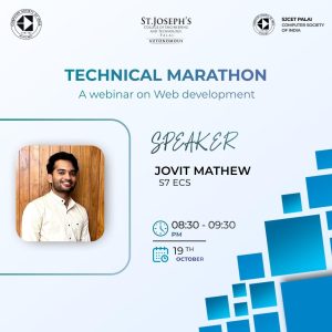 The CSI SJCET Chapter launched its flagship initiative Technical Marathon on 19th October 2024, with an online webinar on Web Development. The session, led by Mr. Jovit Mathew, introduced students to modern web technologies, responsive design, progressive web apps, and frameworks like React, Angular, and Vue.js.