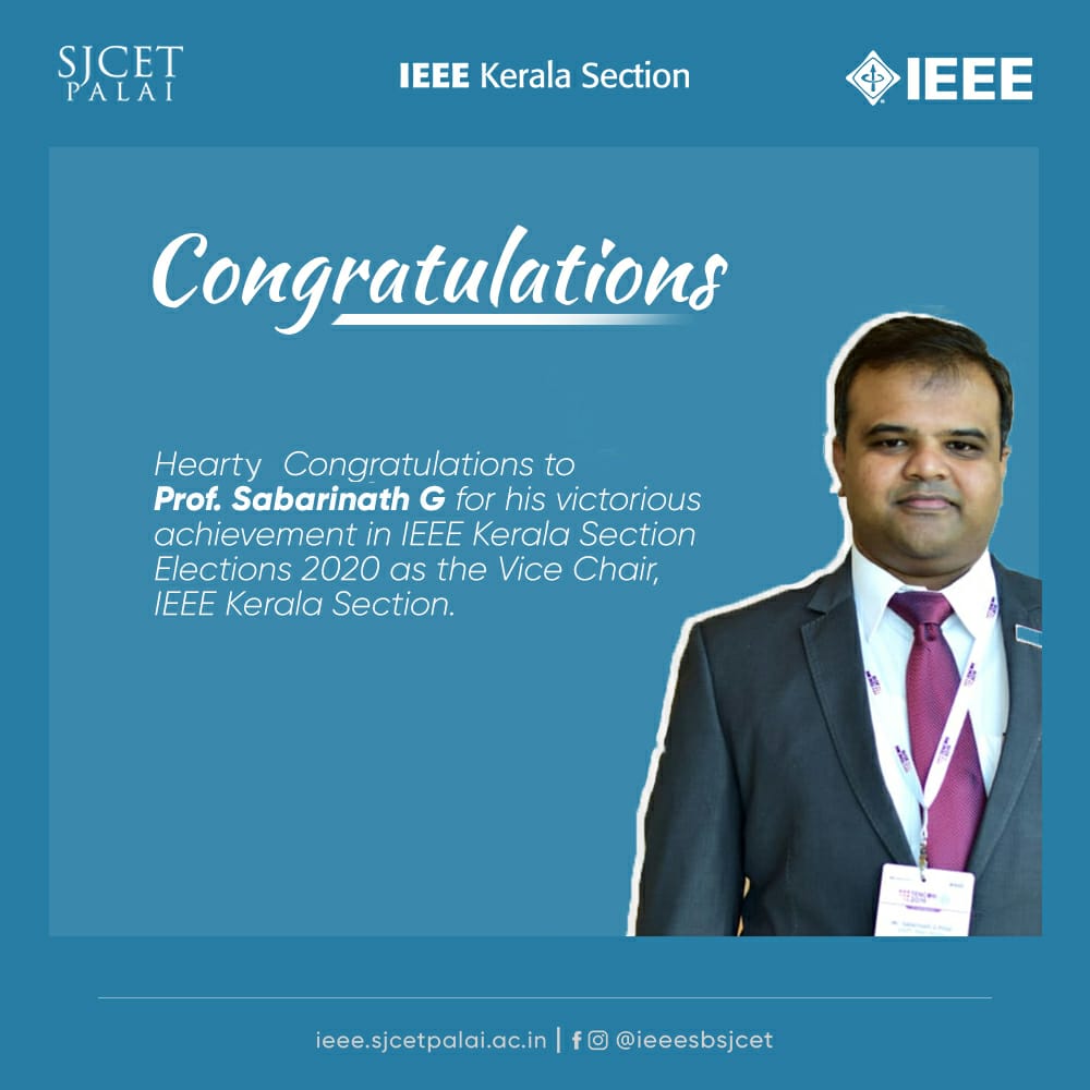 33. Sabarinath G Pillai selected as Vice Chairman, IEEE Kochi Subsection 2019.