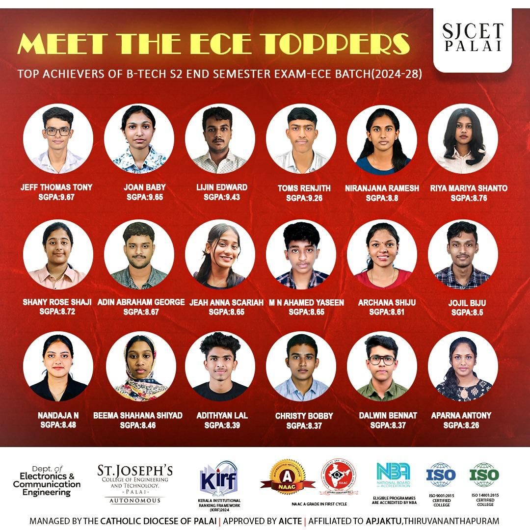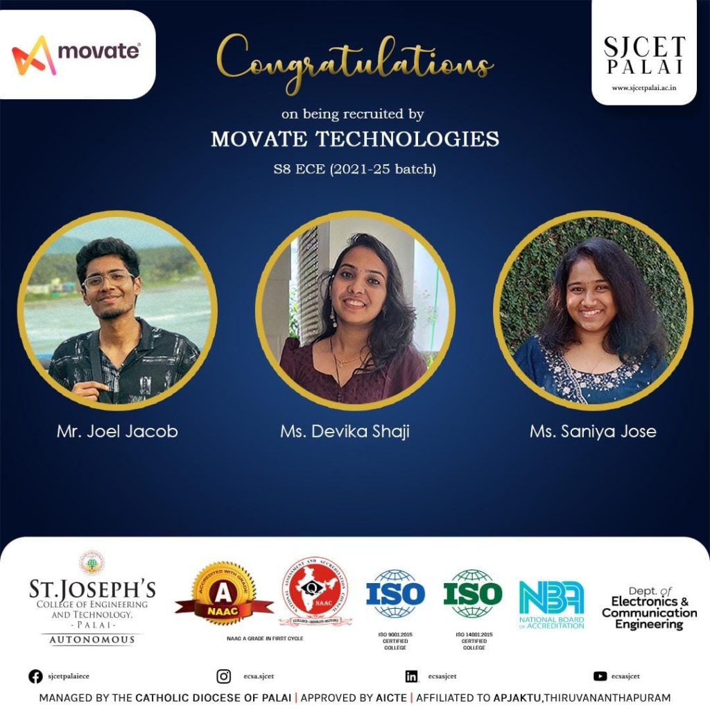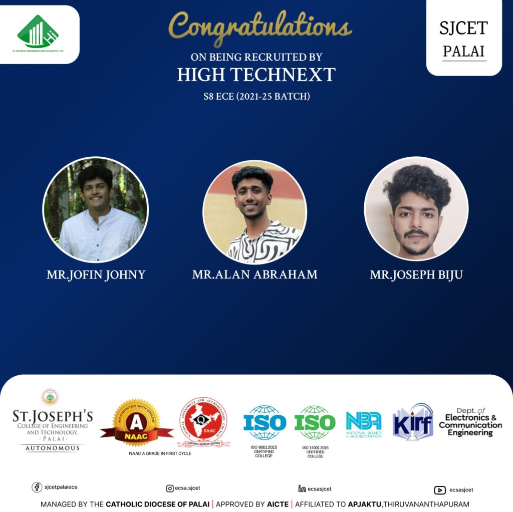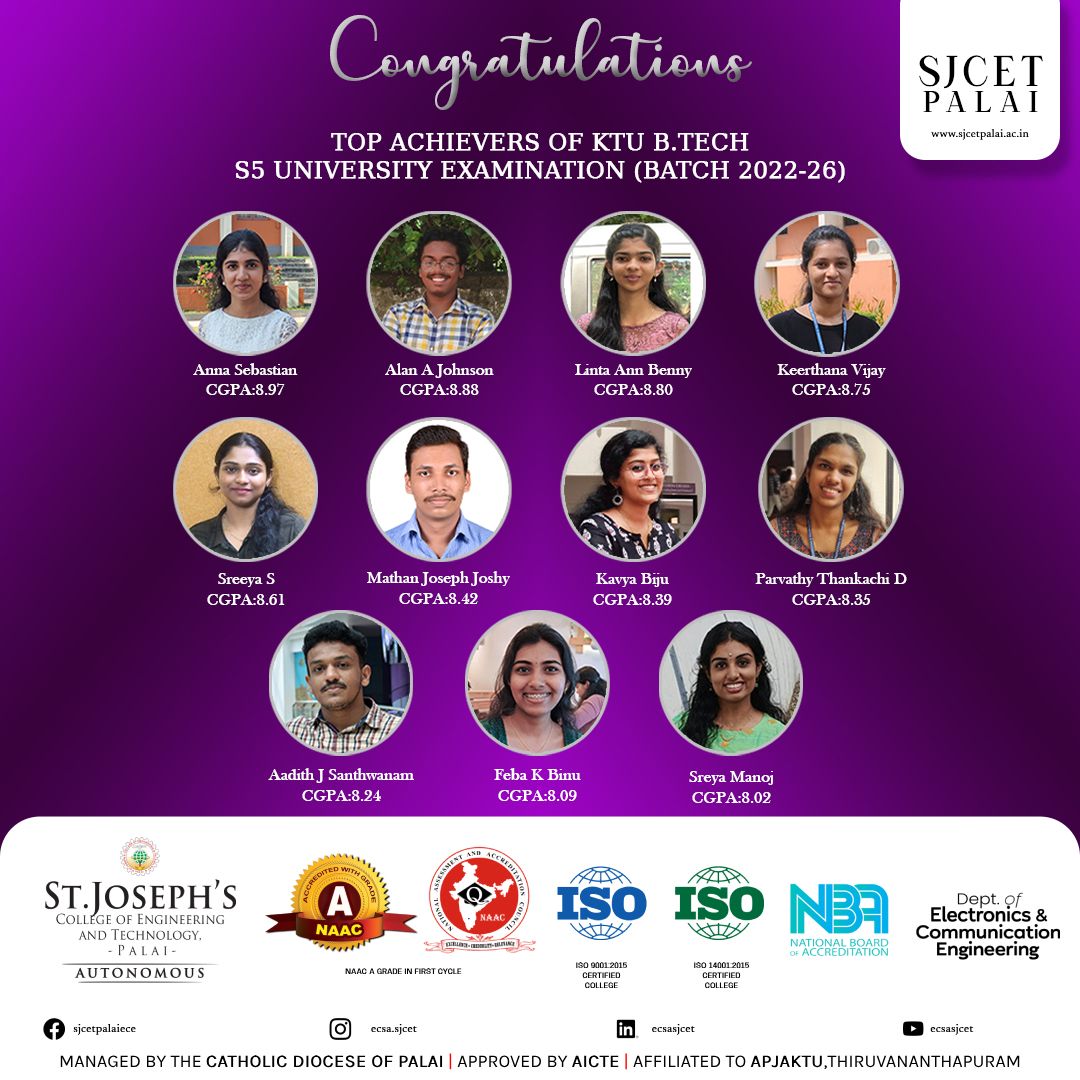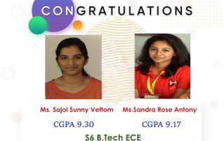 1. Mr .Jiss Joseph, Mr. Anu Somarajan K ,Mr. Gladwin Biju and Mr. Elvin Alousius of S8-ECE won the third place in the paper presentation contest for the paper entitled “Safety Monitoring System for Boats” at APJAKTU techfest-2024,which took place on 16th February 2024 at Ahalia College of Engineering, Palakkad.