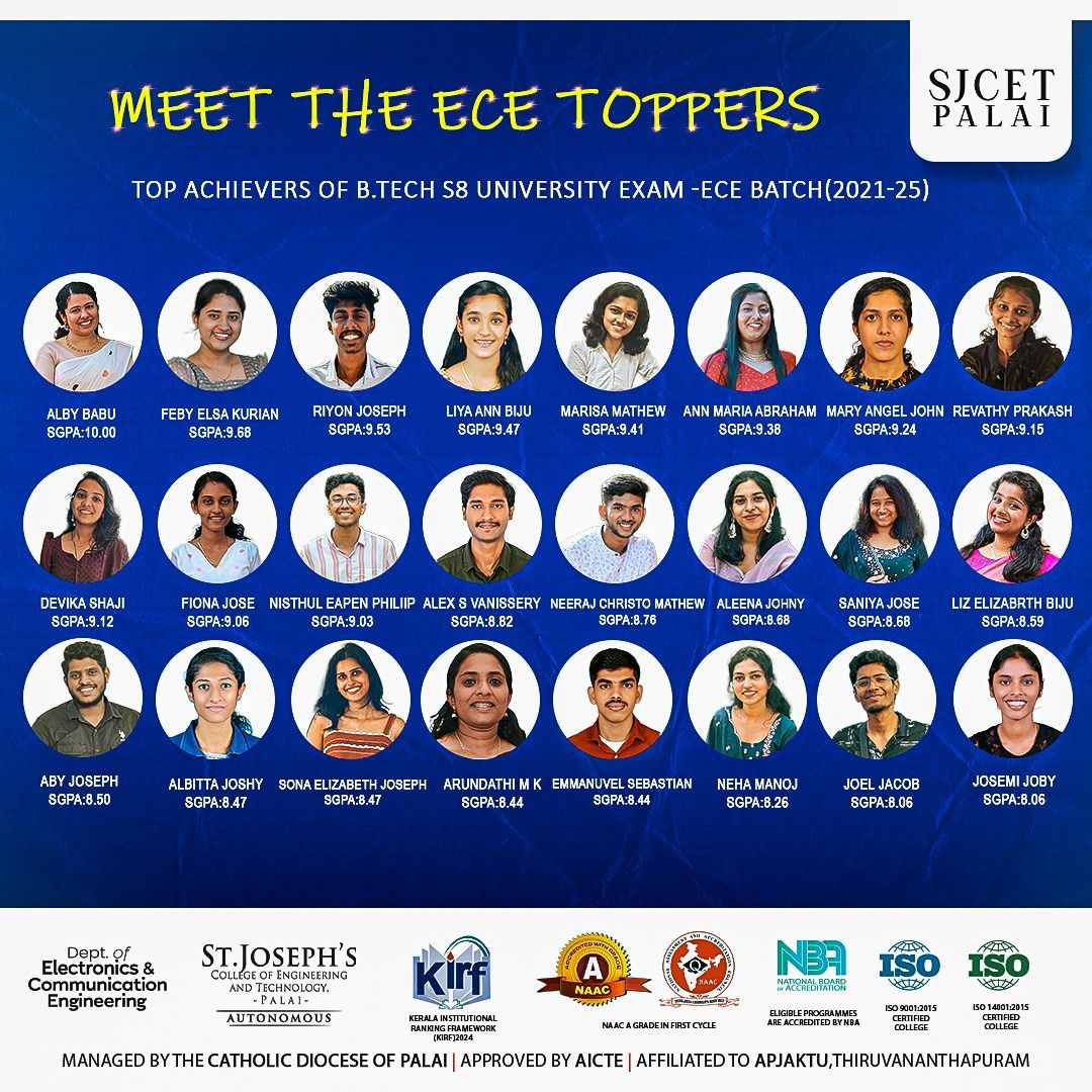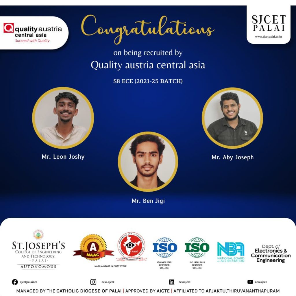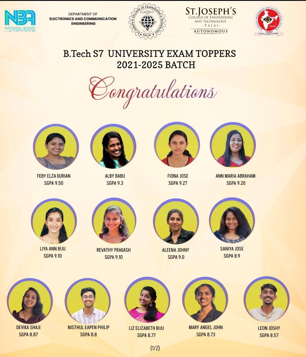 1. Mr .Jiss Joseph, Mr. Anu Somarajan K ,Mr. Gladwin Biju and Mr. Elvin Alousius of S8-ECE won the third place in the paper presentation contest for the paper entitled “Safety Monitoring System for Boats” at APJAKTU techfest-2024,which took place on 16th February 2024 at Ahalia College of Engineering, Palakkad.
