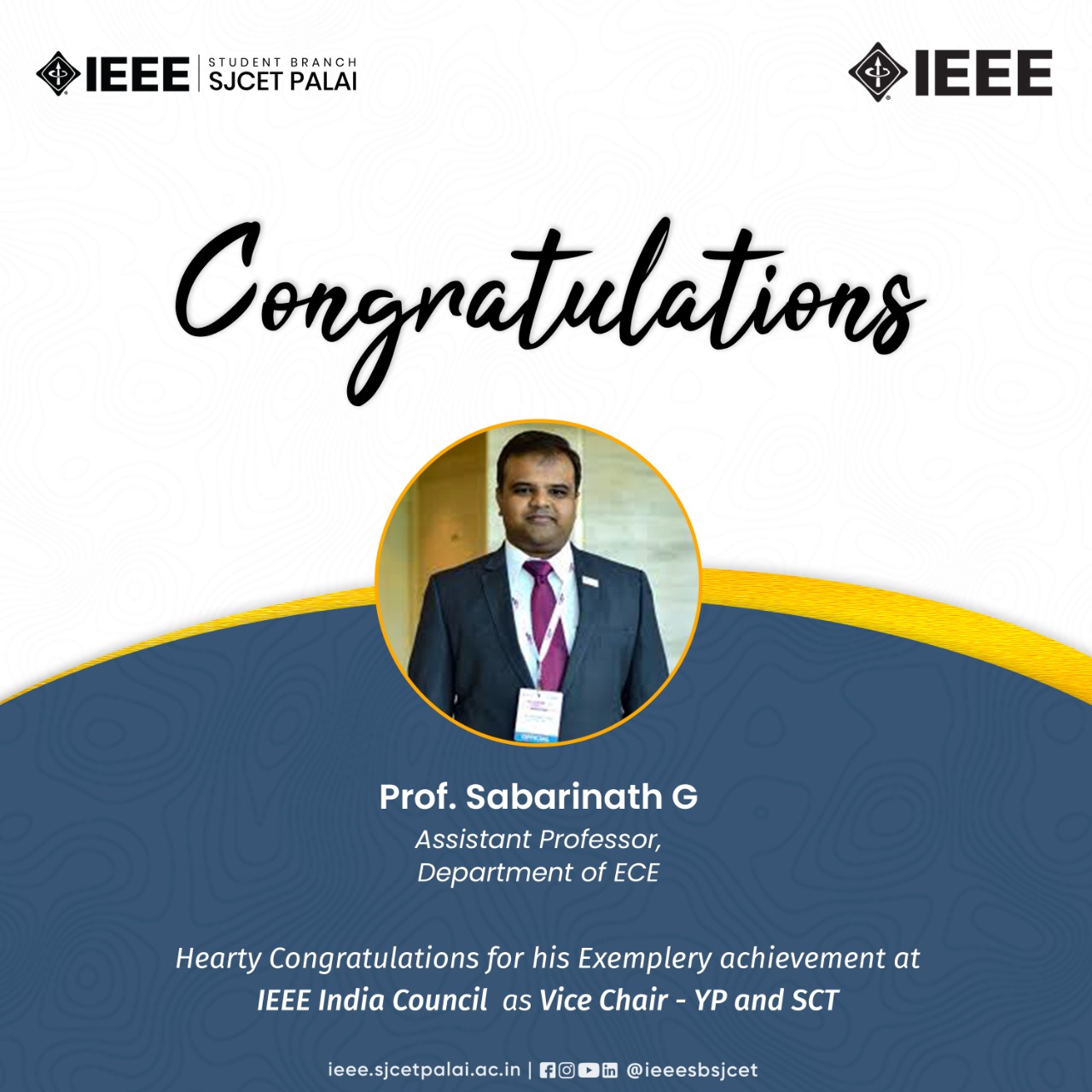 7. Sabarinath G Pillai selected as Secretary, IEEE India Council for the year 2023.