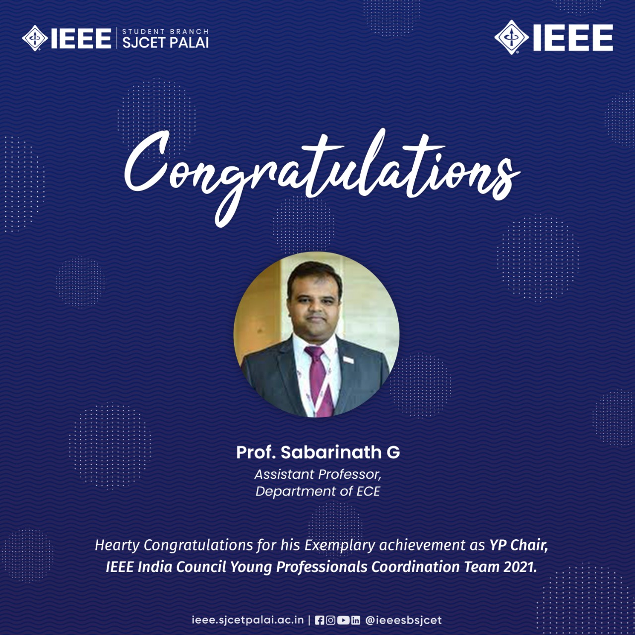 28. Sabarinath G Pillai selected as Vice Chairman, Young Professionals, IEEE India Council 2021.