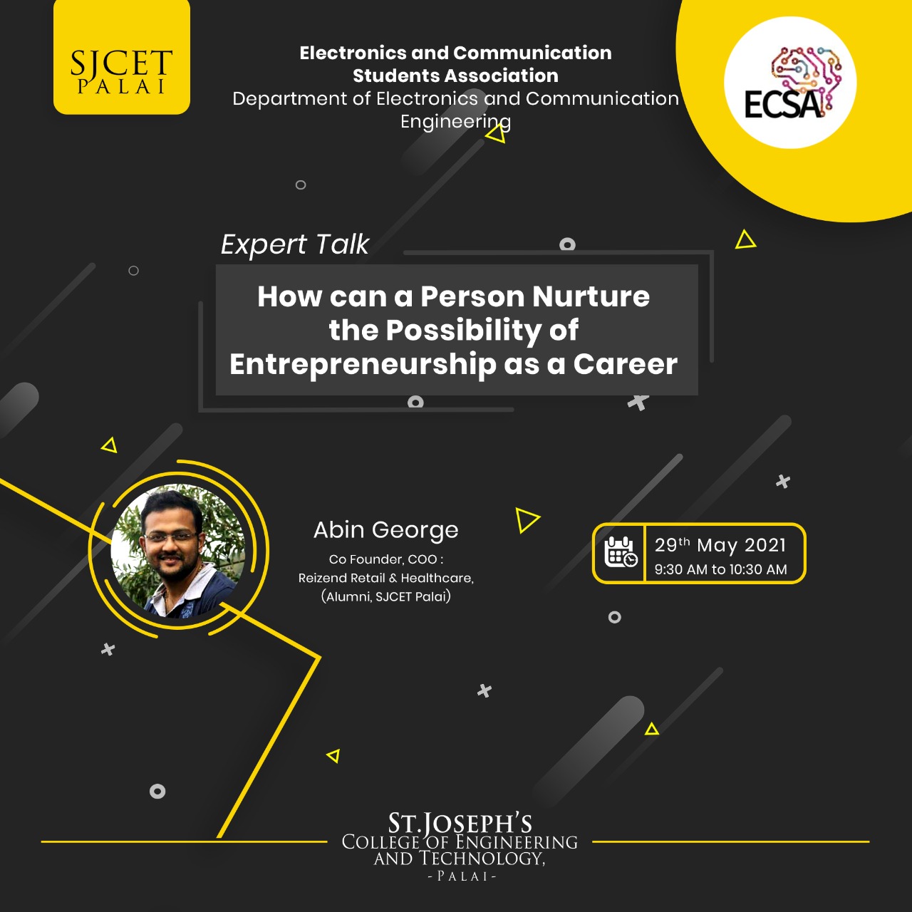 • Electronics and Communication Students’ Association (ECSA) of SJCET, Palai organized an online session on ‘HOW TO PREPARE FOR YOUR DREAM JOB IN ELECTRONICS’ by Mr. Mathew Benny, Software Systems Engineer, Hewlett-Packard, Bangalore on 12th April 2023.