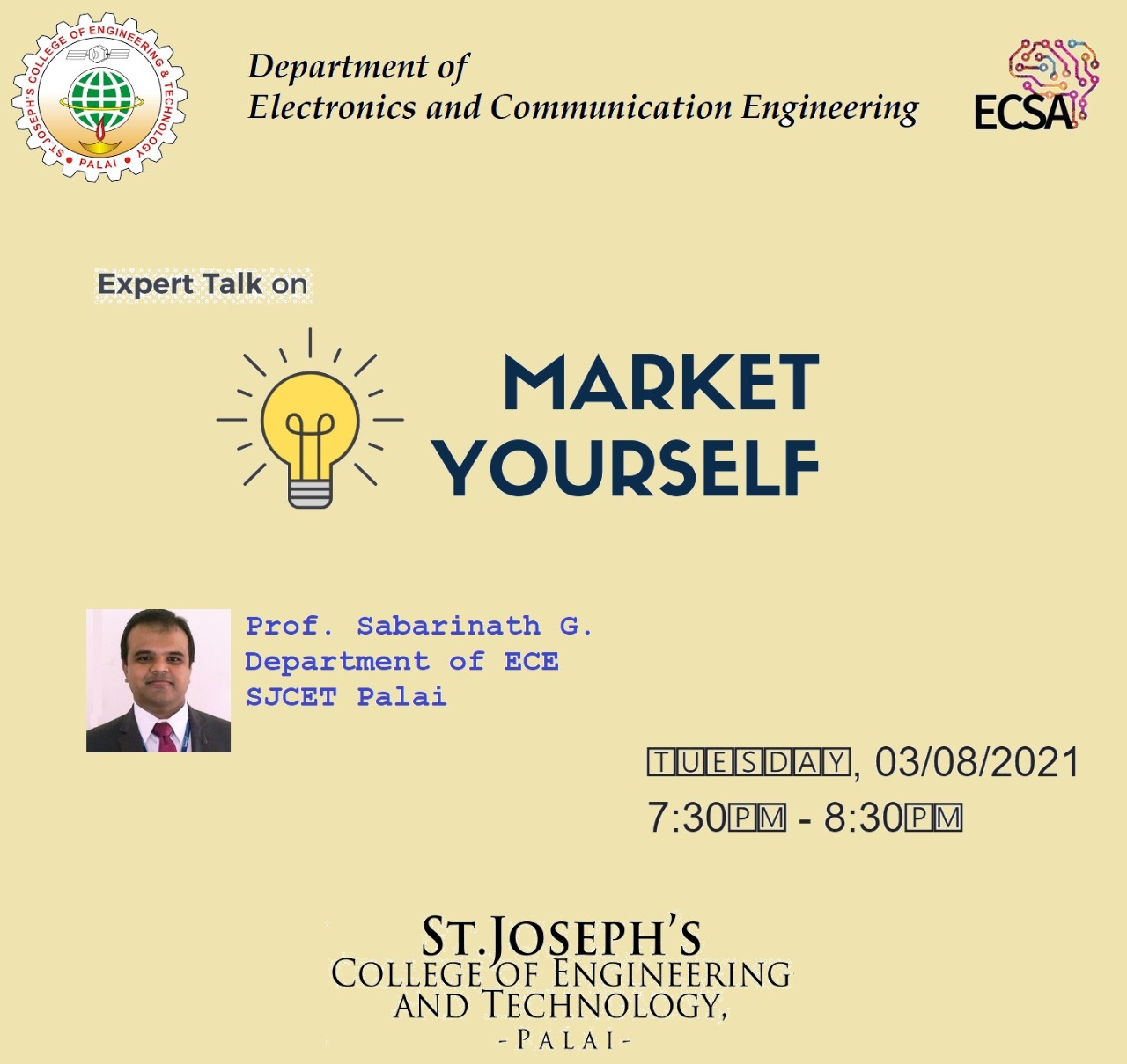 • ECSA of SJCET, Palai organized an online session ‘COMMUNICATIONS SYSTEMS IN KOCHI METRO RAIL LTD.’ by Mr.  Shijin P V.  Telecom In charge (S&T Projects), KMRL, Kochi on  31st  March