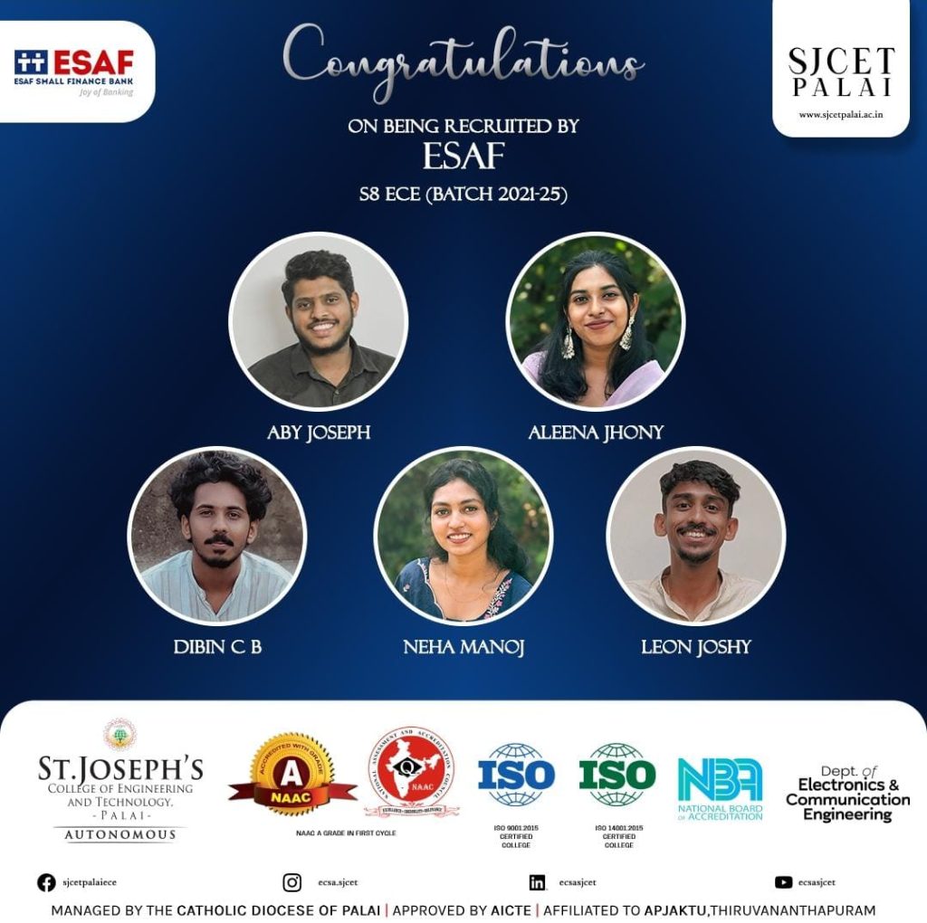 • Shalu  Thomas,  MD  &  CEO  of  Digital  Core  Technologies  Pvt  Ltd  had  given  a  two  day  session  on  “ELECTRONIC  SYSTEM  DESIGN”  for  the  final  year  students  of  the  department  on  16th  &  17th  September  2022 in association with Electronics and Communication Students’ Association (ECSA)  of  SJCET.