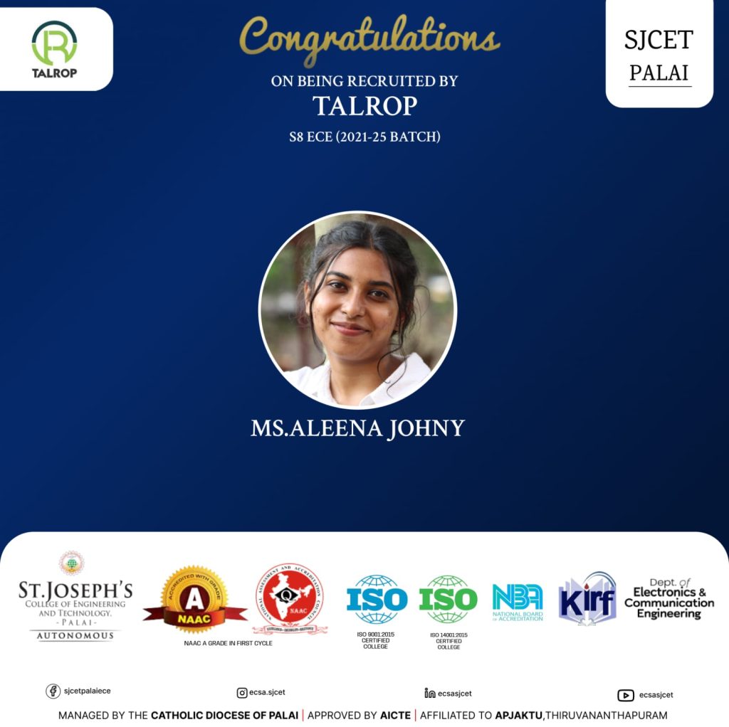 • Ms. Jeslet Joy of S7 Electronics and Communication Department, SJCET Palai delivered an online tech-talk on the topic Aireborne Radars for all the students on 06/06/2023 in association with ECSA at SJCET, Palai.