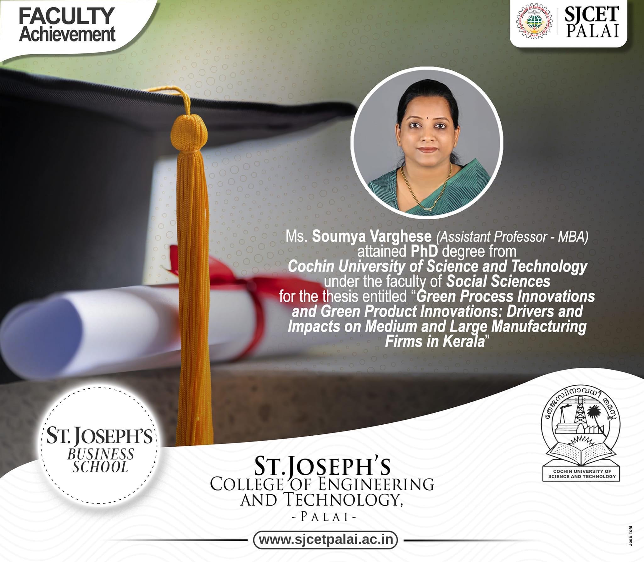 The college is Research Centre of APJ Abdul Kalam Technological University (KTU).Candidates qualifying the KTU’s Entrance procedure can join for Ph.D under the approved guide in the college