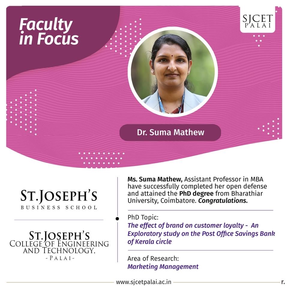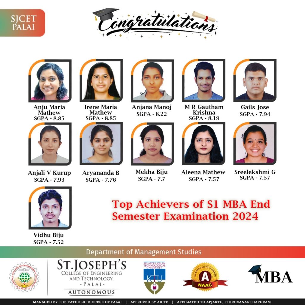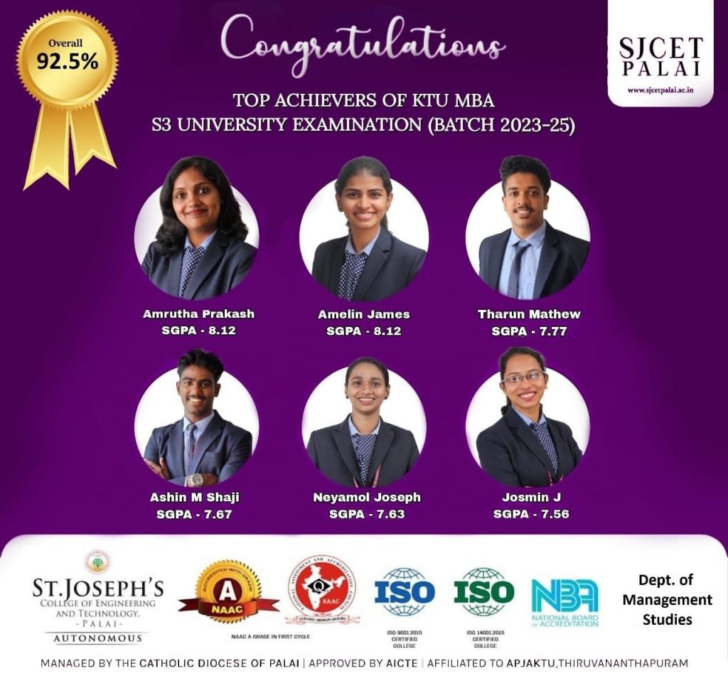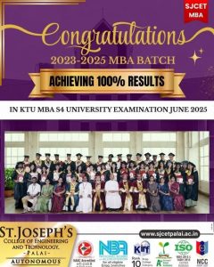 St. Joseph’s Business School is a B-school with a difference. Over the last 19 years, we have been positioned among our stakeholders, as a B-school with distinct identity and character, where education & training is disseminated with discipline, hard work, positive thinking, commitment to excellence and abiding faith in the Almighty. We have been successful in emerging as a Centre of Excellence in Management education & research in the country. Value systems such as eco-friendliness, quality consciousness and work ethics, is instilled through the special work culture and campus life at the school. The B-school managed by the Diocesan Technical Education Trust, Palai is under the patronage of St. Joseph’s College of Engineering and Technology, Palai.Our MBA program is autonomous and affiliated with APJ Abdul Kalam Technological University, Kerala.