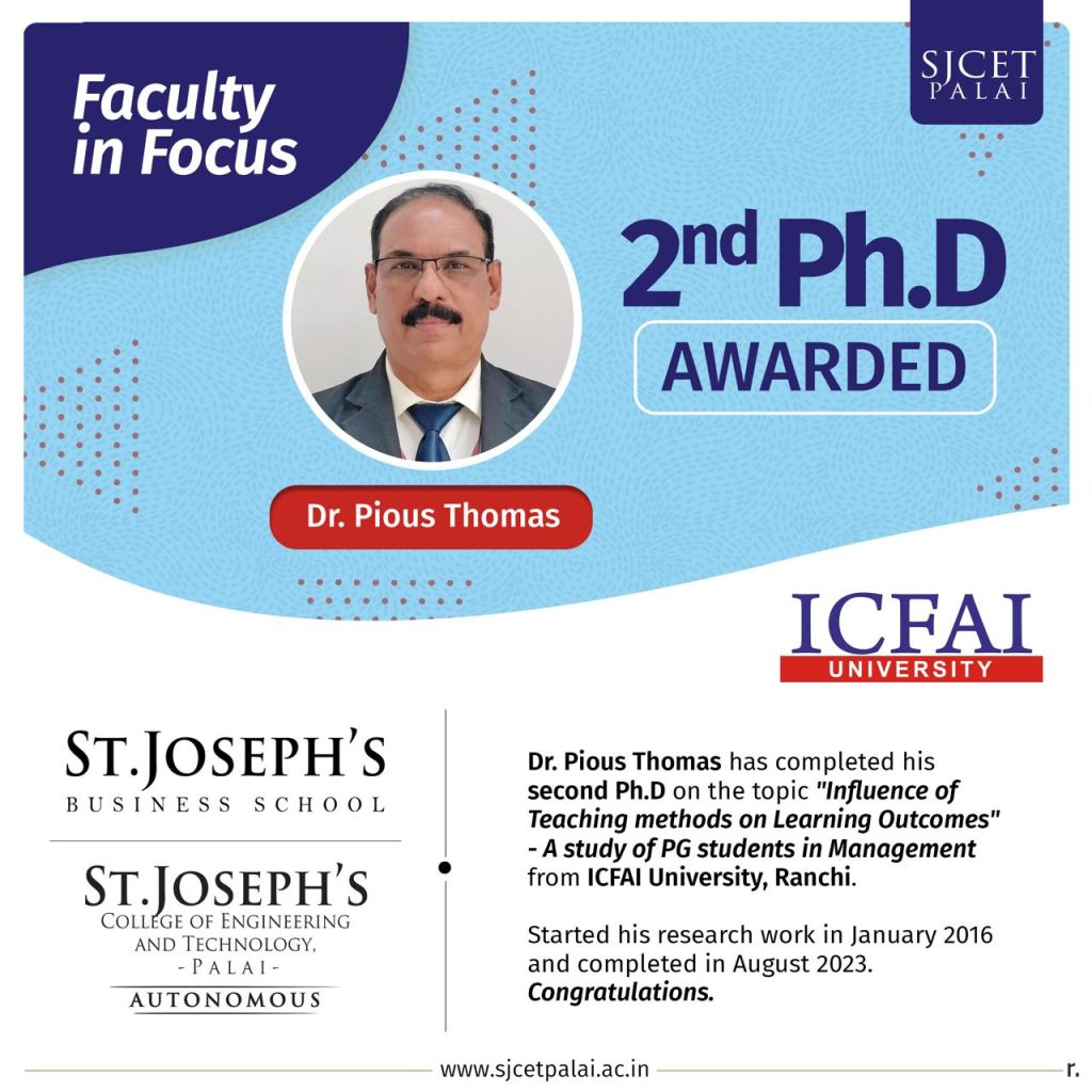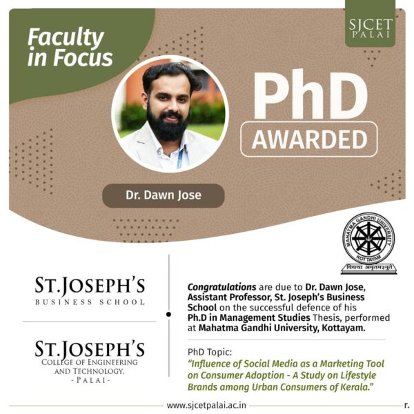 St. Joseph’s Business School started in 2006, was the fulfillment of a long cherished dream of providing facilities for professional education in this part of Kerala. From its very inception , the business school had been relevantly establishing an impeccable reputation among all the stake holders and the visiting committees as a “College with a difference”.