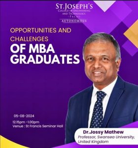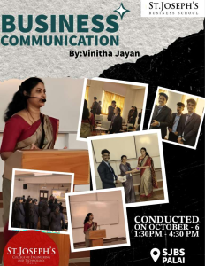 “On 23rd August 2024, St. Joseph’s Business School hosted an insightful expert talk with Joy Mathew, Executive Trainee at Malayala Manorama, sharing industry knowledge and valuable experiences with students.”