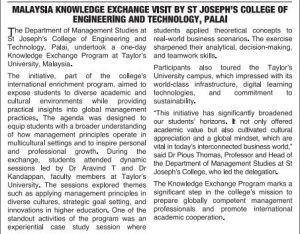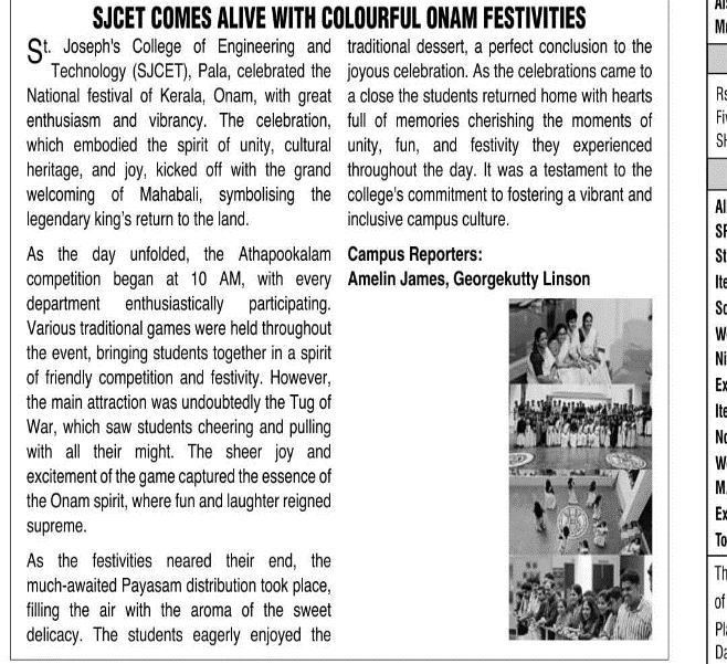 The vibrant Onam celebrations at St. Joseph’s College of Engineering and Technology (SJCET) were recently featured in “Business Standard,”
