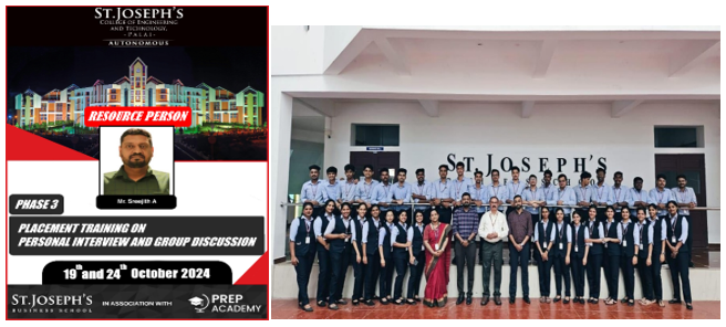 “Placement Training: A Journey Towards Professional Excellence”St. Joseph’s Business School, St. Joseph’s College of Engineering Technology, Autonomous, in association with Prep Academy, organized a four-day placement training session for final-year MBA and MTech students of the 2023-2025 batch.