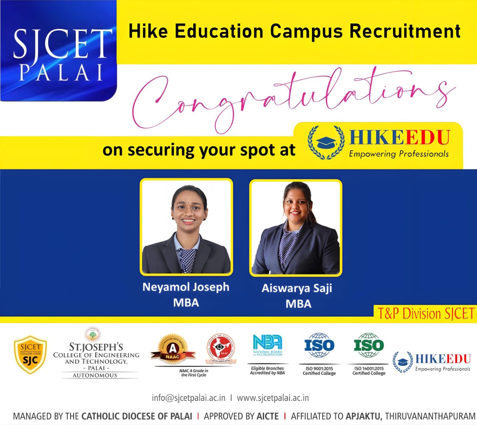 Akhil Mathew, Anu Tom, Sruthi Mathew and Abhishek Saji got placed in Yes Bank