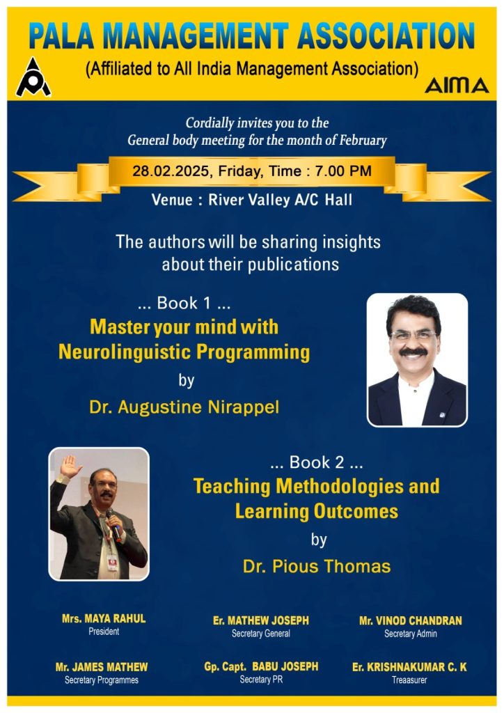 Dr Pious Thomas, Professor and Head of MBA, sharing insights on his book “ Teaching Methodologies and Learning Outcomes” in the Pala Management Association on 28th February 2025.
