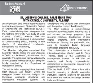 A proud milestone for the MBA Department, SJCET – Collaboration with Our Lady of Good Counsel (OLGC) University, Italy.