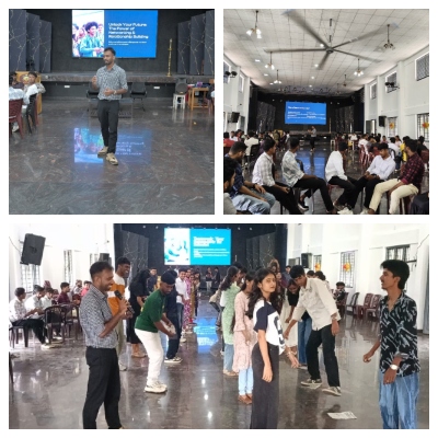 Mr. Bibin Mathew, Assistant Professor, Department of MBA, leading an engaging outreach session on “Unlock your future: The power of Networking and Relationship Building” during July 10 and 11, 2025, at Girideepam Institute of Advanced Learning – Inspiring first year students to build meaningful connections for success.