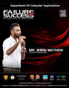 “Failure vs Success: Your Path to Greatness” — Mr. Bibin Mathew, Assistant Professor, Department of MBA, SJCET, addressed the first-year MBA students (Batch 2025–27) as part of their induction training program on 31st July 2025.