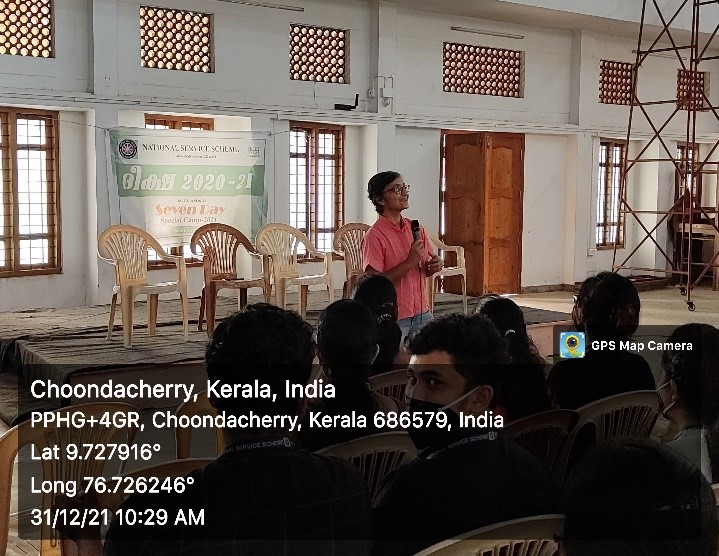 The first day of our camp begun on 26th of December from 10:00 AM in online mode . We had sum of 93 volunteers from 2020-2021. Rev. Fr. Joseph Maleparambil, Rev. Fr. Mathew Koramkuzha delivered the keynote address. M.L. A. Mani C Kappan officiated the inauguration. College Principal Dr. J David, Vice Principal Madhukumar. Dr. Ignatious kora. Program Officers Anto Manuel, Justin Jose, Libin Abraham, Smitha Jacob and Manju George led the way. After lunch break volunteers were divided into five groups and each group was instructed to make NSS memories in charts in creative way as activity for the session. Activities came to an end by 4 30 pm for the day.