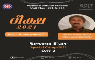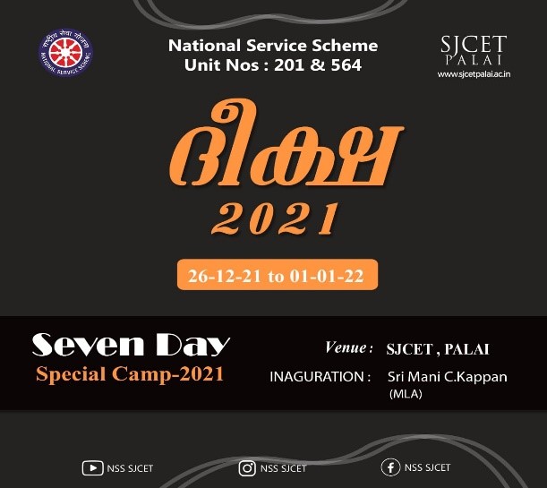 The seven day camp of the National Service Scheme wing of SJCET PALAI was conducted from 26th of December 2021 to 01st of January 2022 at St Joseph’s College Of Engineering and Technology ,palai.