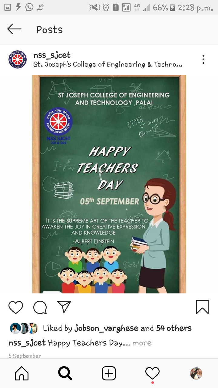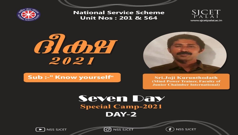 SJCET NSS unit is affiliated to Department of Technical Education, Government of Kerala. It was inaugurated on 27-04-2008 by Mr K. A. Kalith programme coordinator, RIT, Pampady. The motto or watchword of the national service scheme is ‘not me but you’. This reflects the essence of democratic living and upholds the need for selfless service and appreciation of the other person’s point of view and also to show consideration for fellow human beings. It underlines that the welfare of an individual is ultimately dependent on the welfare of society as a whole. Therefore, it should be the aim of the NSS to demonstrate this motto in its day-to-day programme.