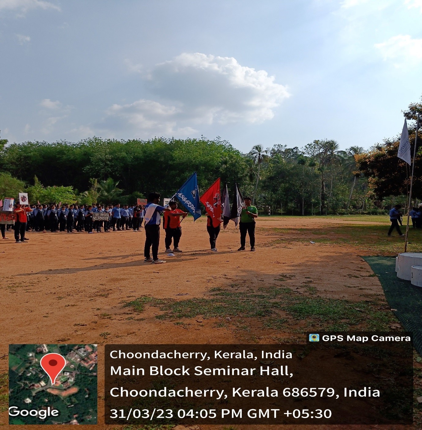 The annual athletic meet 2023-24 was organised on Wednesday, 28th February 2024. The programme started with march past of the athletes and NCC cadets in which more than 500 students took part. Chairman Fr. Joseph Maleparambil received the salute. After flag hoisting the chairman Fr. Joseph Maleparambil inaugurated the meet.