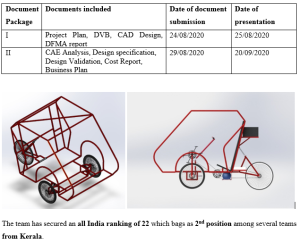 Due to the pandemic situation in 2020, the on spot running competition of efficycle is cancelled and the whole competition is organized in virtual mode in which the team should submit two sets of documents and should appear for the live presentation in two stages. The details of the documents submitted and the event dates are listed below: