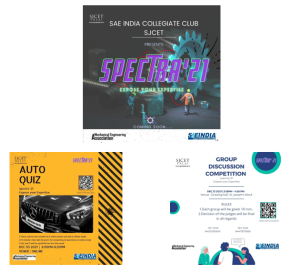 SAEINDIA Collegiate Club SJCET organized thirteen Tier – I completions (under the banner name SPECTRA 2.0) during 2 – 10 November 2023. The competitions were organized according to the rule book provided by SAEINDIA Southern Section