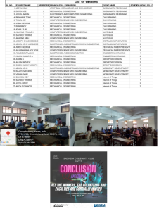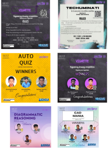Tier-1 (intra-college) competitions are organized during 5th to 22nd of December 2021. Ten competitions are organized under the title SPECTRA’21. The competitions are organized either through on-line or through off-line mode as convenient. A volunteer team formulated to organize the competitions. Individual posters for each events are published. The events concluded on 22/12/2023 in which the results announced and college level prizes are distributed by HOD, ME.