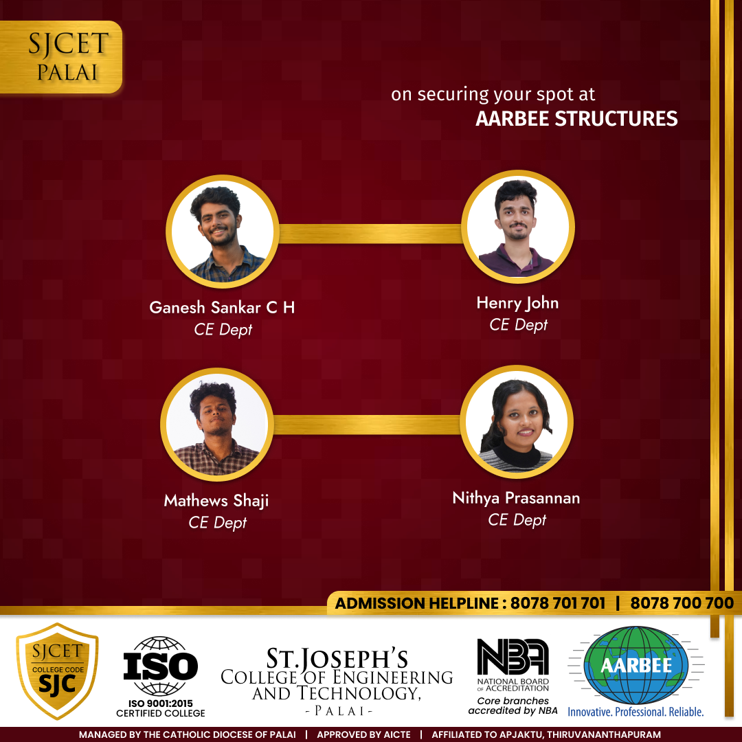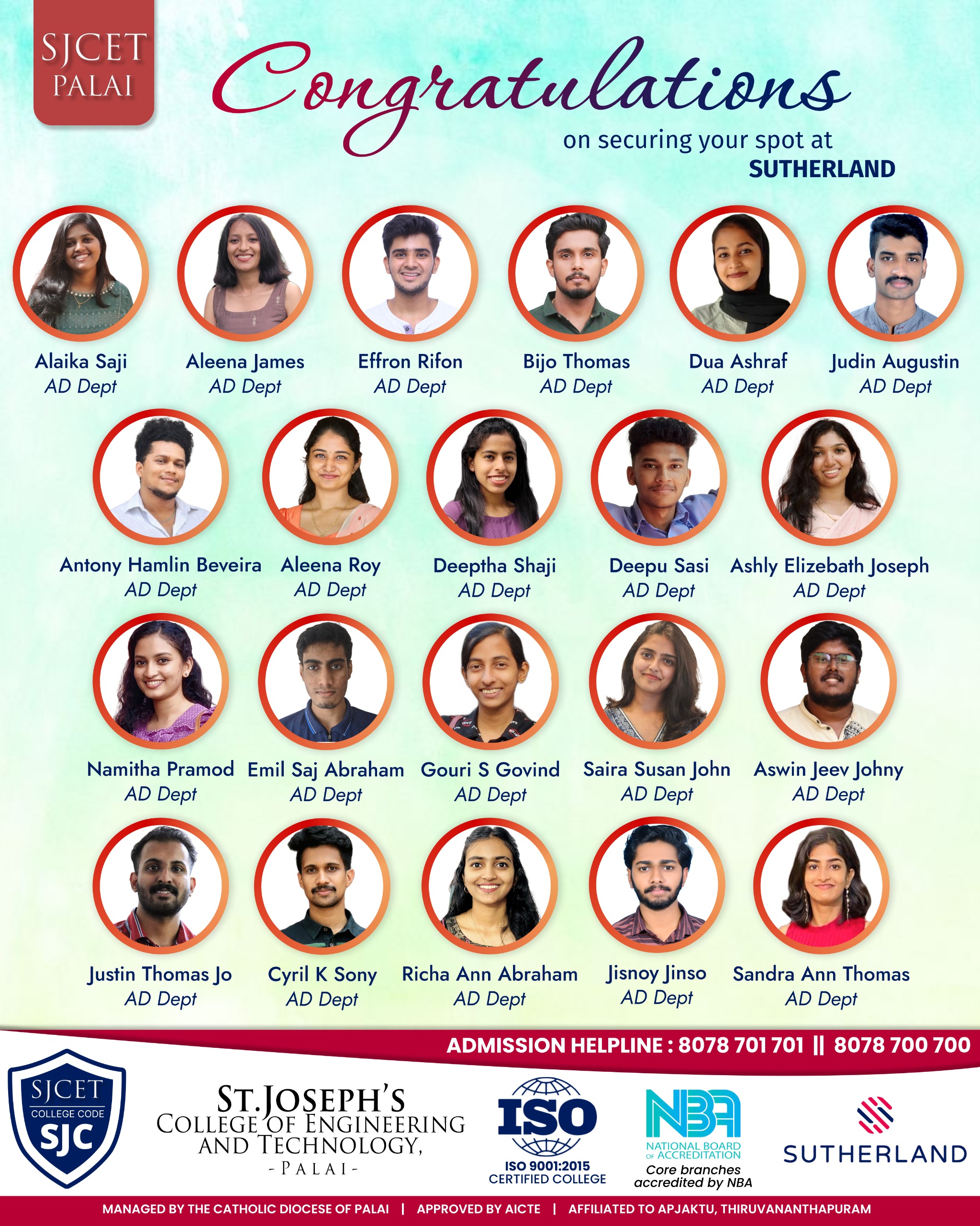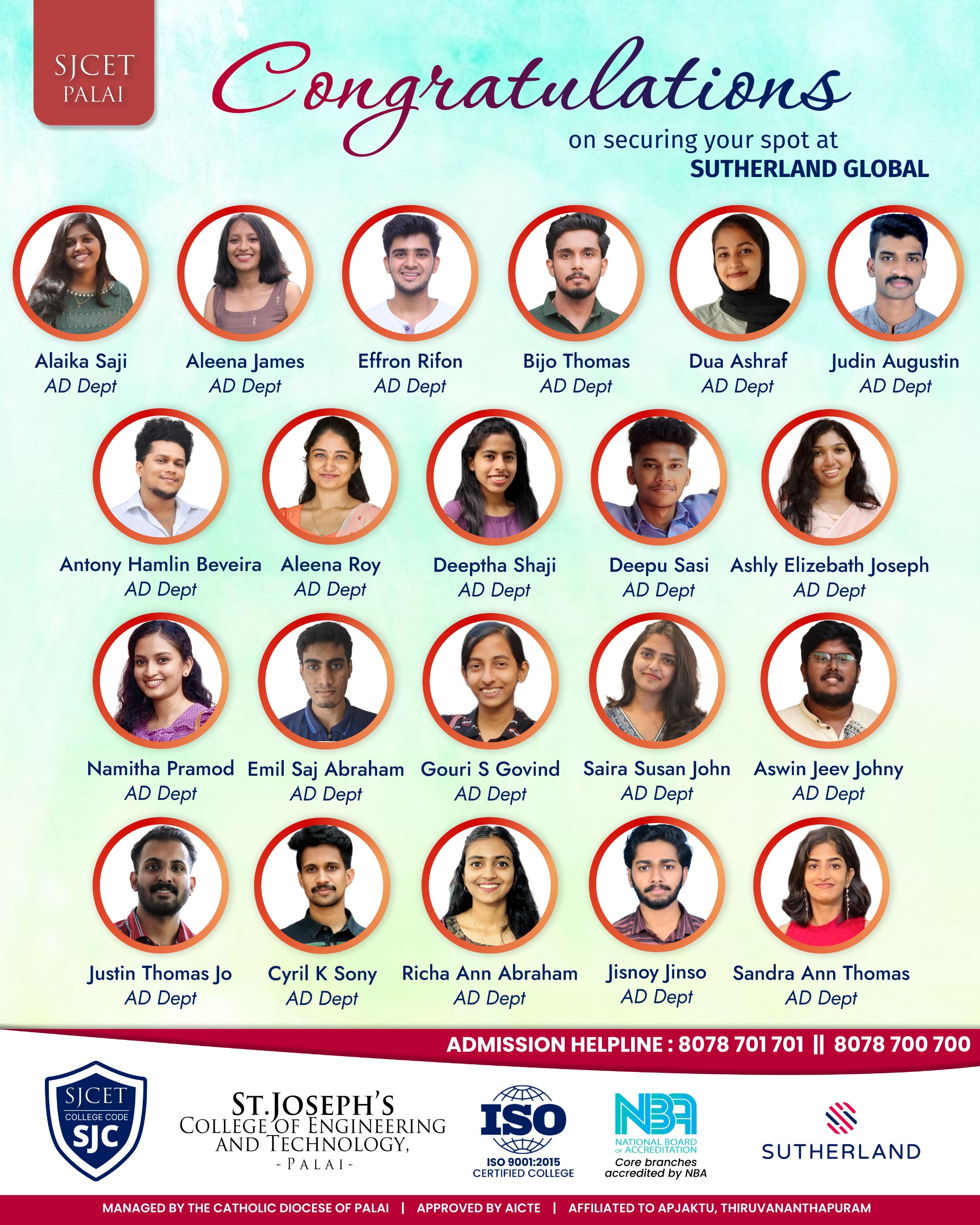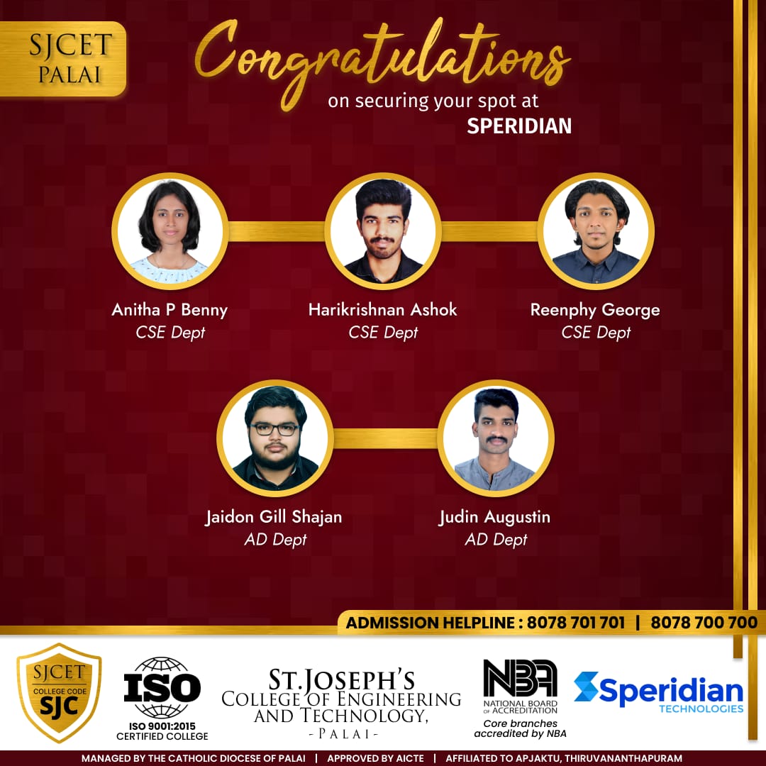 SJCET boasts of outstanding placements ever since its inception. SJCET’s placement statistics stand ample testimony to its objective of placing all eligible & interested candidates according to the students’ career choices. Even during challenging times of economic recession, on account of the corporate trust reposed on SJCET, we were able to harness significantly good careers for our students.
