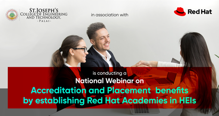 The Red Hat academy of SJCET Palai, in association with Red Hat India, conducted a National Webinar to academic institutes in India on “Accreditation and Placement Benefits by establishing Red Hat Academies in HEIs” on 03 June 2021.